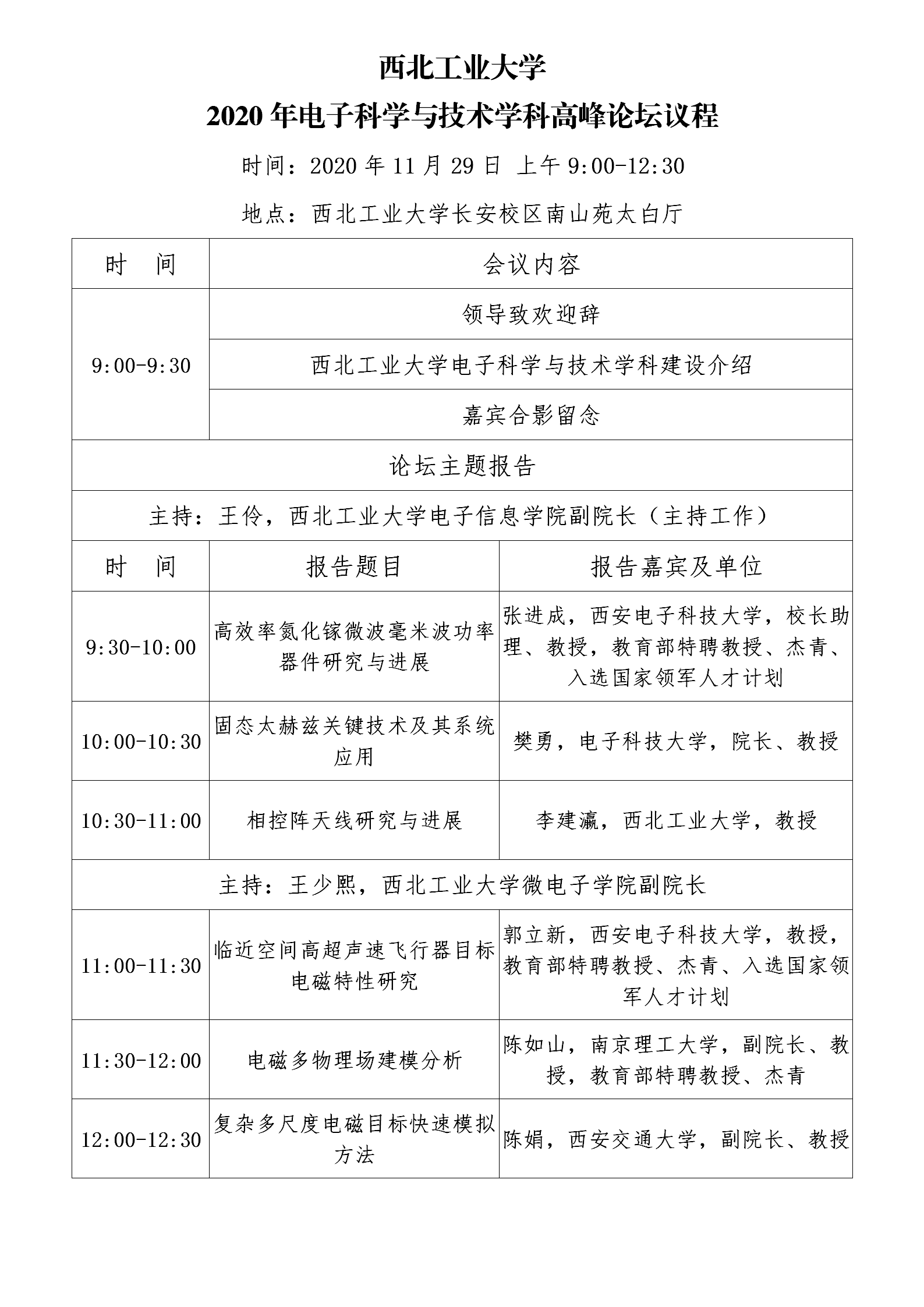 地点:西北工业大学长安校区南山苑太白厅