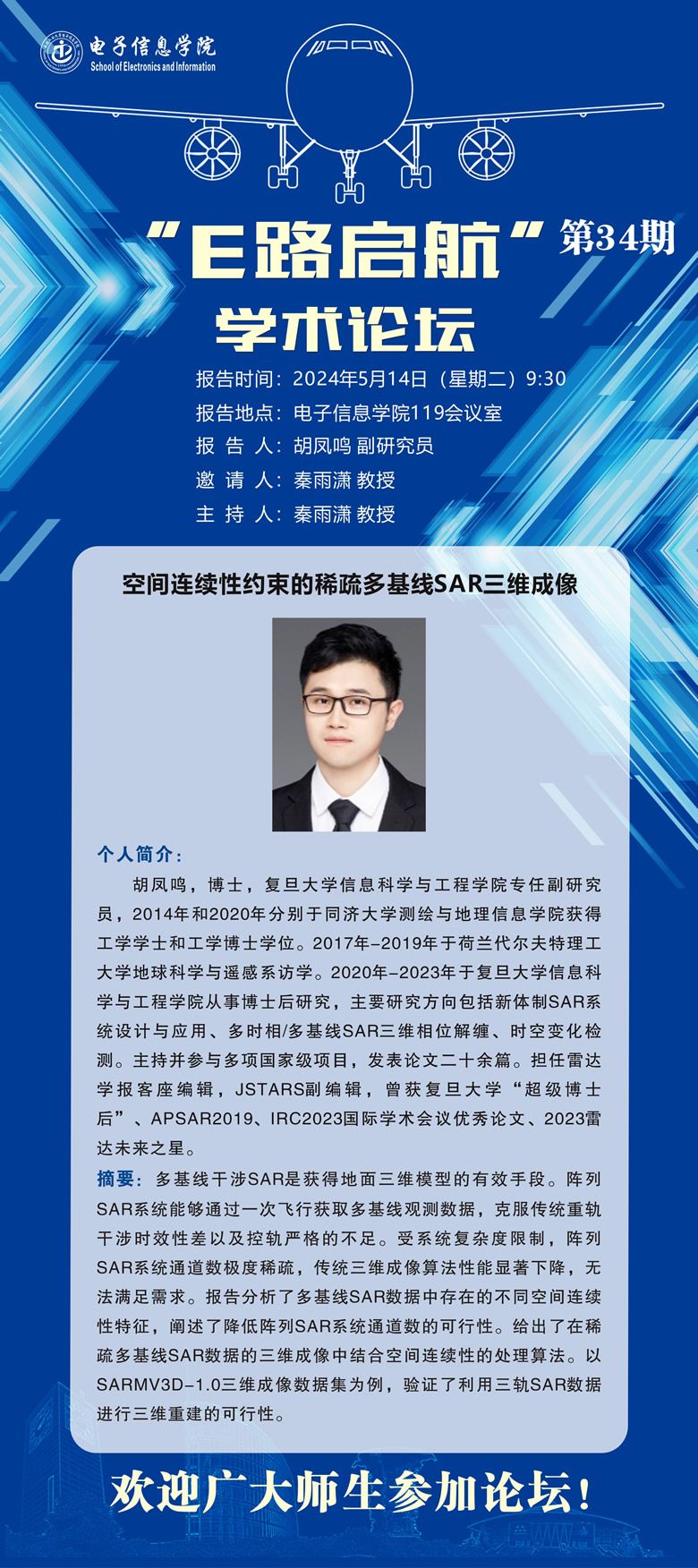 “E路启航”学术论坛第34期——空间连续性约束的稀疏多基线SAR三维成像