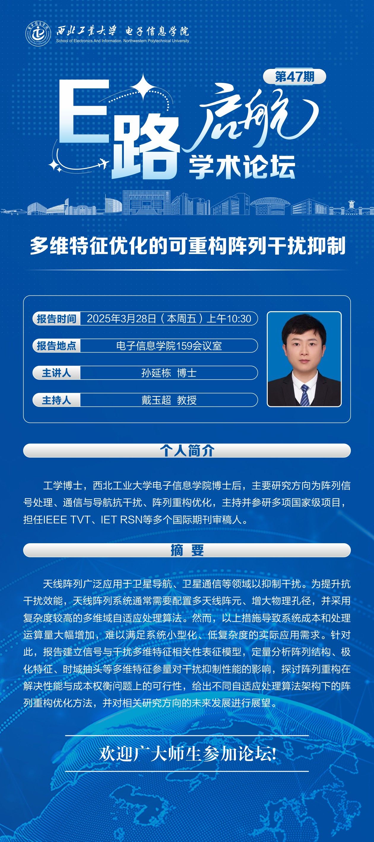 “E路启航”学术论坛第47期——多维特征优化的可重构阵列干扰抑制