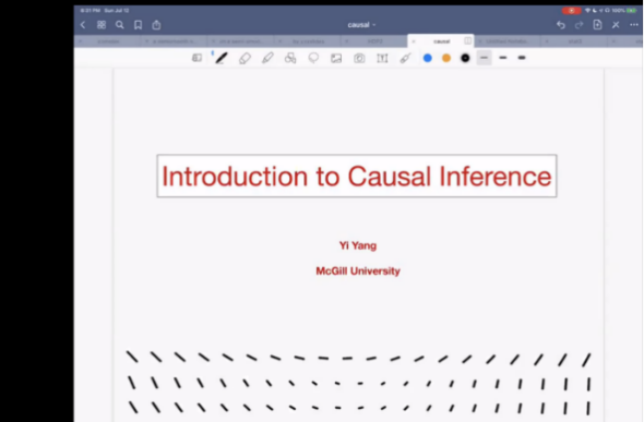 受电子信息学院邀请,加拿大麦吉尔大学数学与统计学系老师Yi Yang,于2020年7月13日至7月20日,在我校“暑期国际学堂”活动中,在线讲授了Introduction to Causal inference/因果推断入门。在线授课期间,助教支元杰老师跟班协助Yi Yang组织参与部分教学活动。
