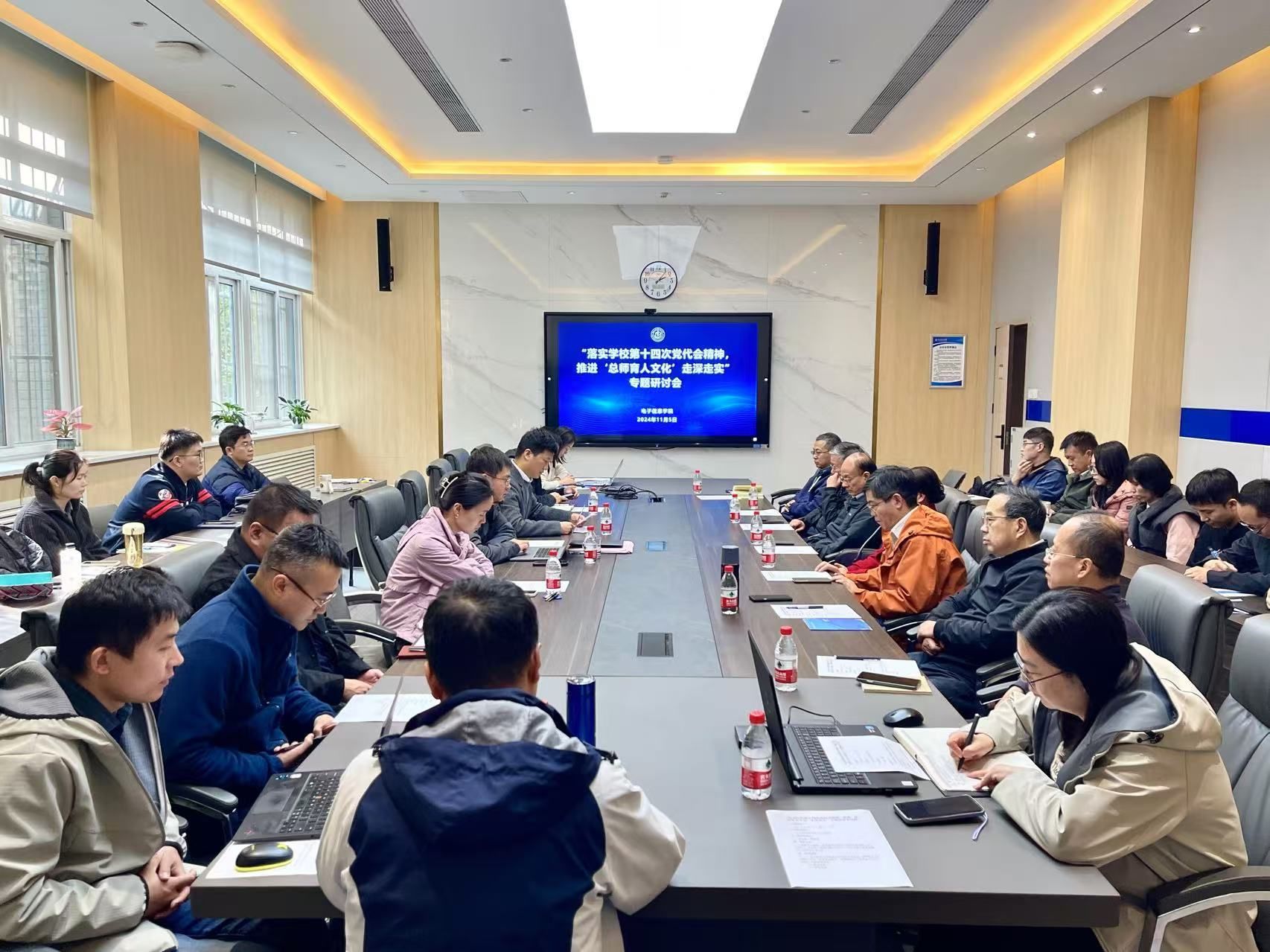 为贯彻落实学校第十四次党代会精神,持续强化“总师育人文化”引领人才培养,10月5日下午,电子信息学院在119会议室召开“总师育人文化”走深走实专题研讨会。党委书记侯俊、党委副书记高敏、副院长高永胜、各专业负责人、各系主任、各课程(群)负责人以及近三年新入职青年教师参加了此次会议,会议由高永胜主持。