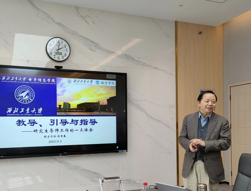 2023年11月3日,电子信息学院召开“总师育人文化”研究生导师系列培训活动之优秀导师经验分享会。本次活动特邀西北工业大学航空学院杨智春教授担任主讲嘉宾,电子信息学院新认定导师及在岗导师近40人参加活动。会议由副院长姚如贵主持。