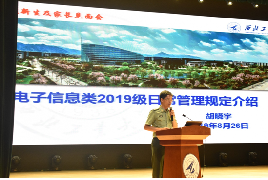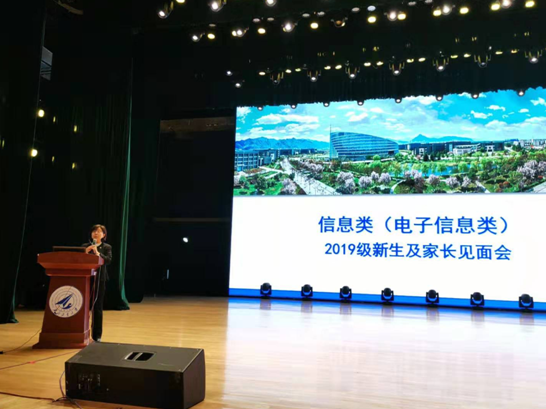8月26日晚七点,信息类(电子信息类)2019级新生及新生家长见面会在长安校区翱翔学生活动中心顺利举行。本次见面会旨在让新生及家长更好的了解大类招生培养的相关政策,更好更快地适应大学生活。参加本次见面会的有西北工业大学校长助理、信息类首席教授张艳宁,电子信息学院及微电子学院院长周德云、党委书记李春林,电子信息学院副院长王伶、周巍、党委副书记宗凡、彭蓉,微电子学院副院长王少熙,电子信息学院院长助理周世钢、包涛,信息类(电子信息类)2019级辅导员、班主任,以及信息类(电子信息类)2019级全体新生及家长。会议由电子信息学院党委副书记彭蓉主持。