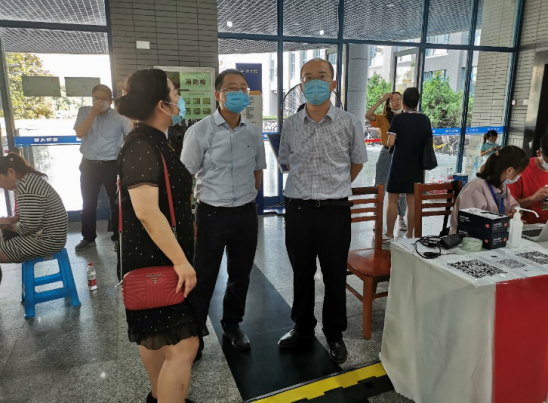 电子信息学院党委书记李春林、微电子学院院长周德云、电子信息学院副院长周巍、党委副书记彭蓉、彭亮来到现场询问电子信息大类迎新工作情况。各位迎新工作人员分工明确,认真负责,详细地为各位新生注册登记、发放物资、解答问题,迎新工作高效进行。