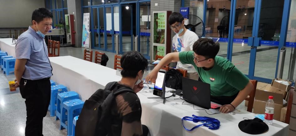 30日晚上22点,学生志愿者们迎来了今日最后一位刚从机场赶来的新生,尽管路途中辛苦,可是同学们依旧怀揣着步入大学生活的兴奋,顺利地完成了报到。电子信息学院团委学生会主席杨炳南、副主席赵炎帮助最后一位新生完成报到。至此,2020年电子信息类本科迎新工作进入尾声,两日总共报到人数393人,目前还有6位同学还未报到,期待他们的到来!