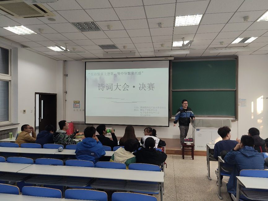 2020年10月24日星期六下午四到六时,由共青团西北工业大学委员会主办,电子信息学院团委、微电子学院团委、国学社承办的诗词大会决赛于西北工业大学长安校区教学东楼D座205成功举办。经过层层筛选,最终留下了六支实力强劲的队伍,每支队伍都在此次比赛中展现出了自己的风采。