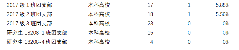 然而,17级、研究生级仍有很多班级完成率低于50%,希望这些班级在之后的学习中能够提高学习积极性,向完成度较高的团支部汲取经验,按时完成学习任务。