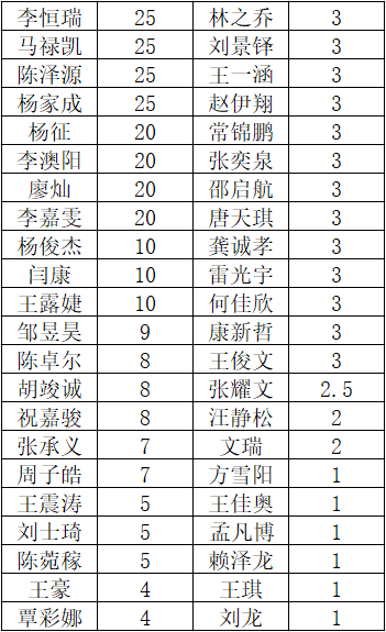现对全体志愿者志愿服务时长进行公示,望全体志愿者在今后继续大力弘扬奉献、友爱、互助、进步的志愿精神,引导更多的同学参与志愿者服务。