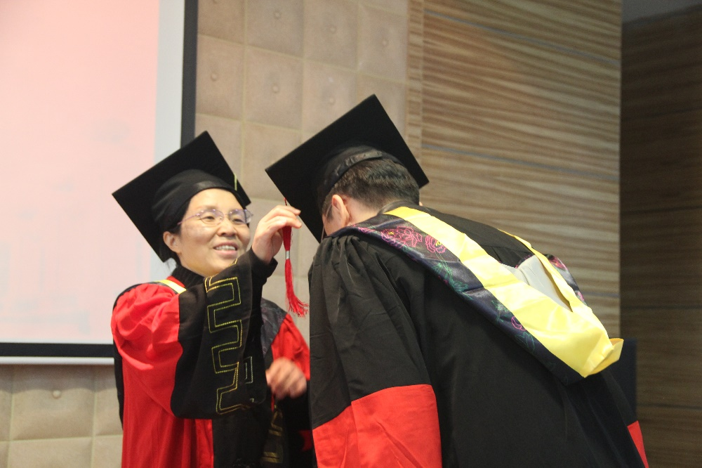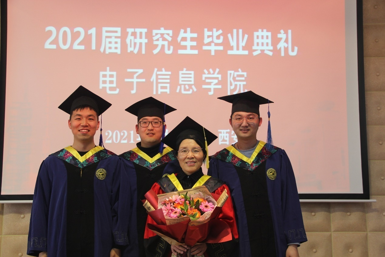典礼最后,王伶、冯晓毅、周巍、张若南等四位老师为获得硕士学位的学生援正流苏,合影留念,为同学们在西工大的学习生活画上最圆满的句号。