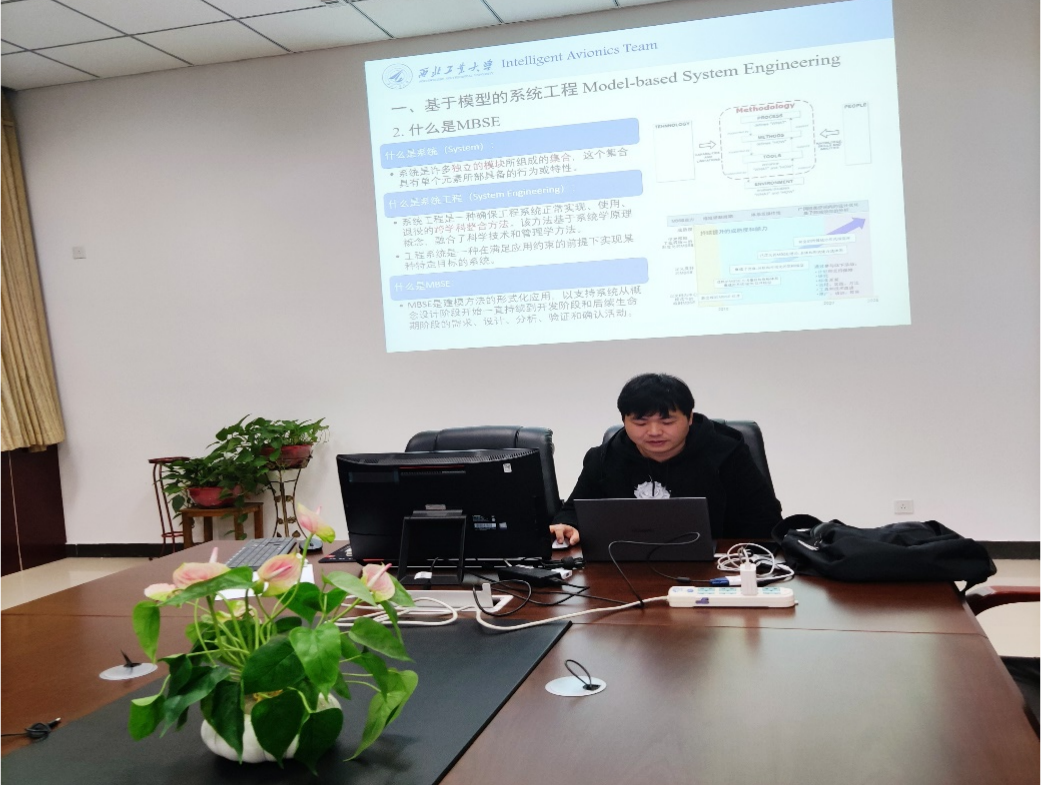 电子信息学院2020级博士研究生李珂以《浅谈MBSE在工程项目中的应用》为主题,结合自身科研经历,分享了对MBSE的理解,以及如何在工程项目中发挥其作用。李珂从其定义出发,讲解了什么是系统、什么是系统过程,进一步阐述到什么是MBSE(Model-based System Engineering);分析了MBSE能够用来干什么,以及这一技术的优势。李珂结合自己团队的项目经验,介绍了如何利用MBSE进行建模。整场分享“干货满满”,使参会者生动了解了建模的整个流程,开拓了大家视野,启发了大家的思路。在座同学纷纷表示收获颇多,对其深入浅出的讲解报以热烈掌声。