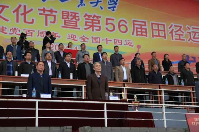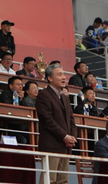 待奏唱国歌与升旗结束后,汪劲松校长等校领导依次发表讲话。 运动员、裁判员代表进行宣誓。