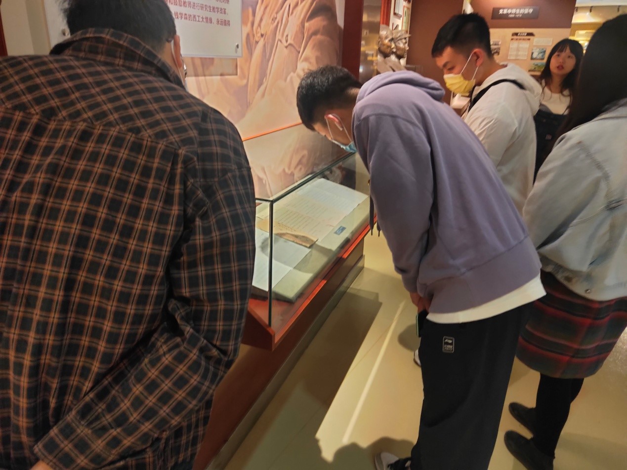 在讲解员的带领下,同学们深入理解“公诚勇毅”校训的深刻含义,进一步了解我校厚重的文化底蕴。同学们从一个个展板、一件件历史实物中,深切感受到学校厚重的历史积淀、丰硕的办学成果和奋发的进取精神。在听完讲解后,同学们纷纷表示,通过此次生动的学习机会,用校史学习引领党史教育,继而凝聚爱国奉献精神力量,有效加强了大家对“西工大现象”的认识和铸国之重器的重要意义,倍觉肩负责任的重大和神圣。大家一致认为,作为西工大学子,必须牢记“公诚勇毅”的校训,不断向先辈学习,不负青春使命,不负时代重托,勇担中华民族伟大复兴的历史重任。