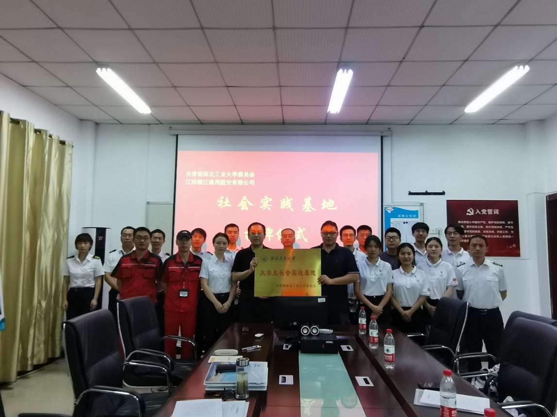 江西赣江通用航空有限公司总经理宋琦、副总经理崔新民,以及公司各部门领导和员工代表,西北工业大学电子信息学院粟嘉老师和实践队全体成员共同参加此次签约暨挂牌仪式。
