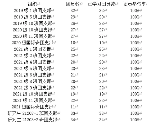 然而,研究生级、18级许多班级及其他年级个别班级完成率仍低于50%,极个别班级完成率低于20%,如2018级08061804班团支部,2018级08061809班团支部,2018级08031801班团支部,研究生19208-1团支部,研究生19208-2团支部,研究生19208-4团支部,研究生19208-6团支部,希望这些班级在之后的学习中能够提高学习积极性,向完成率较高的团支部汲取经验,按时完成学习任务。