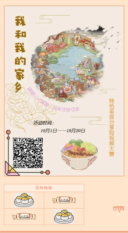 为了响应《西北工业大学新时代大学生劳动教育实施方案》,引导同学们弘扬中华民族传统饮食文化,让同学们在表达对家乡深厚情感的同时,能够崇尚劳动、尊重劳动、辛勤劳动,并亲身劳动感受中华美食的道与技、情与美,由西北工业大学校团委主办,软件学院、电子信息学院和西北工业大学学生九州美食文化协会联合承办的“我和我的家乡”特色美食分享短视频大赛十月份在线上开展。该活动希望同学们可以在视频中展现出各地的特色,传递每个地区的美食文化!