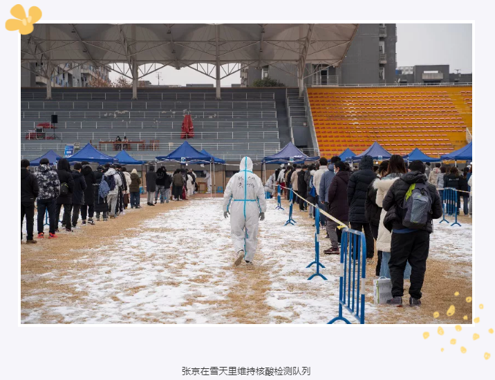 我们院的几位参加核酸检测工作的志愿者,在核酸检测当天遇到降雪天气,他们不畏严寒,坚持完成核酸检测工作!