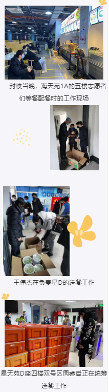 随着校园疫情防控力度的不断“升级”,学校进行封闭式管理,“送餐到宿舍”让全院同学们足不出户就能享用热腾腾的饭菜。温暖同学们的爱心餐,从做好到送到同学们手上,每一个环节都离不开可爱的志愿者们。