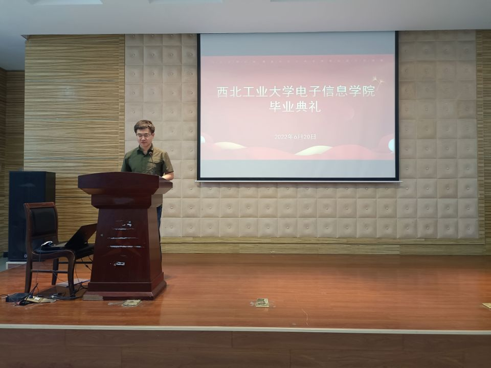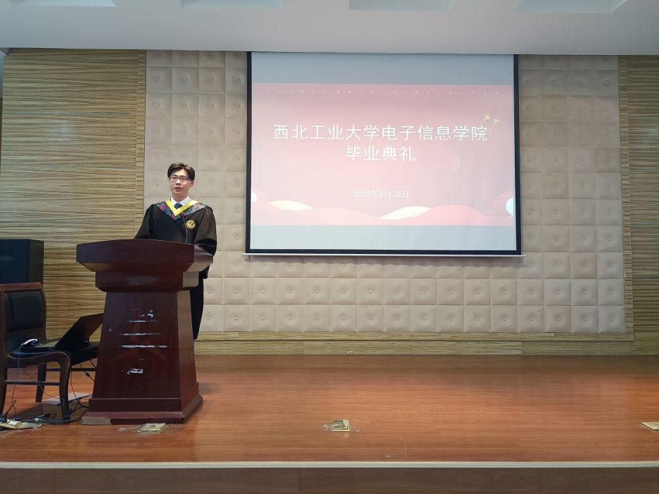 最后,优秀毕业生代表陈志康发言。他回顾了在学校接受文化熏陶、刻苦钻研学习、矢志科技创新的四年大学时光,并表示将肩负起西工大人的光荣和理想,把个人追求理想融入党和国家的事业中,争做新时代创新人才,不负青春,不负韶华。