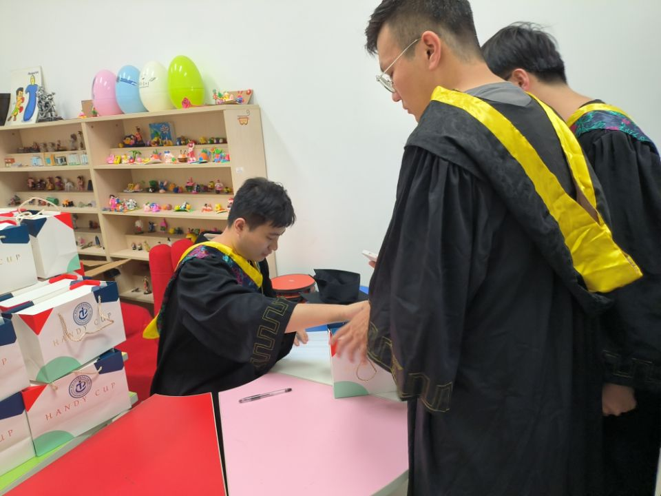 会后,学院为大家订制的刻有电子信息学院院徽的寓意着“一辈子”的随手杯发放到了每个同学的手中。