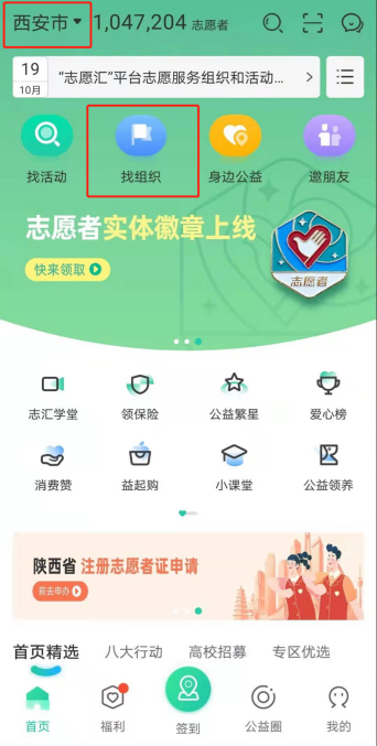 5.在首页进入“找组织”界面