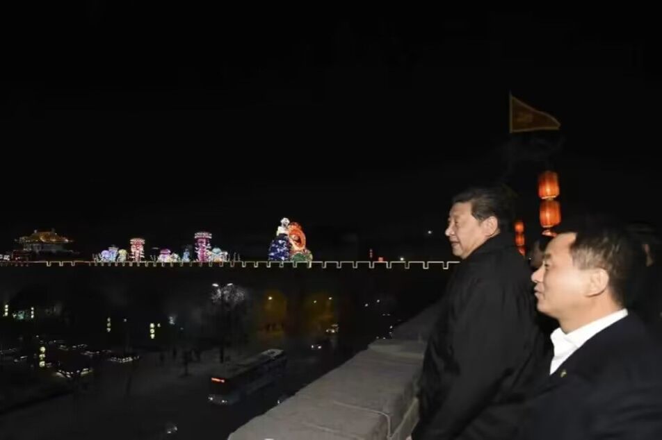 (图为习近平总书记登上西安城墙)