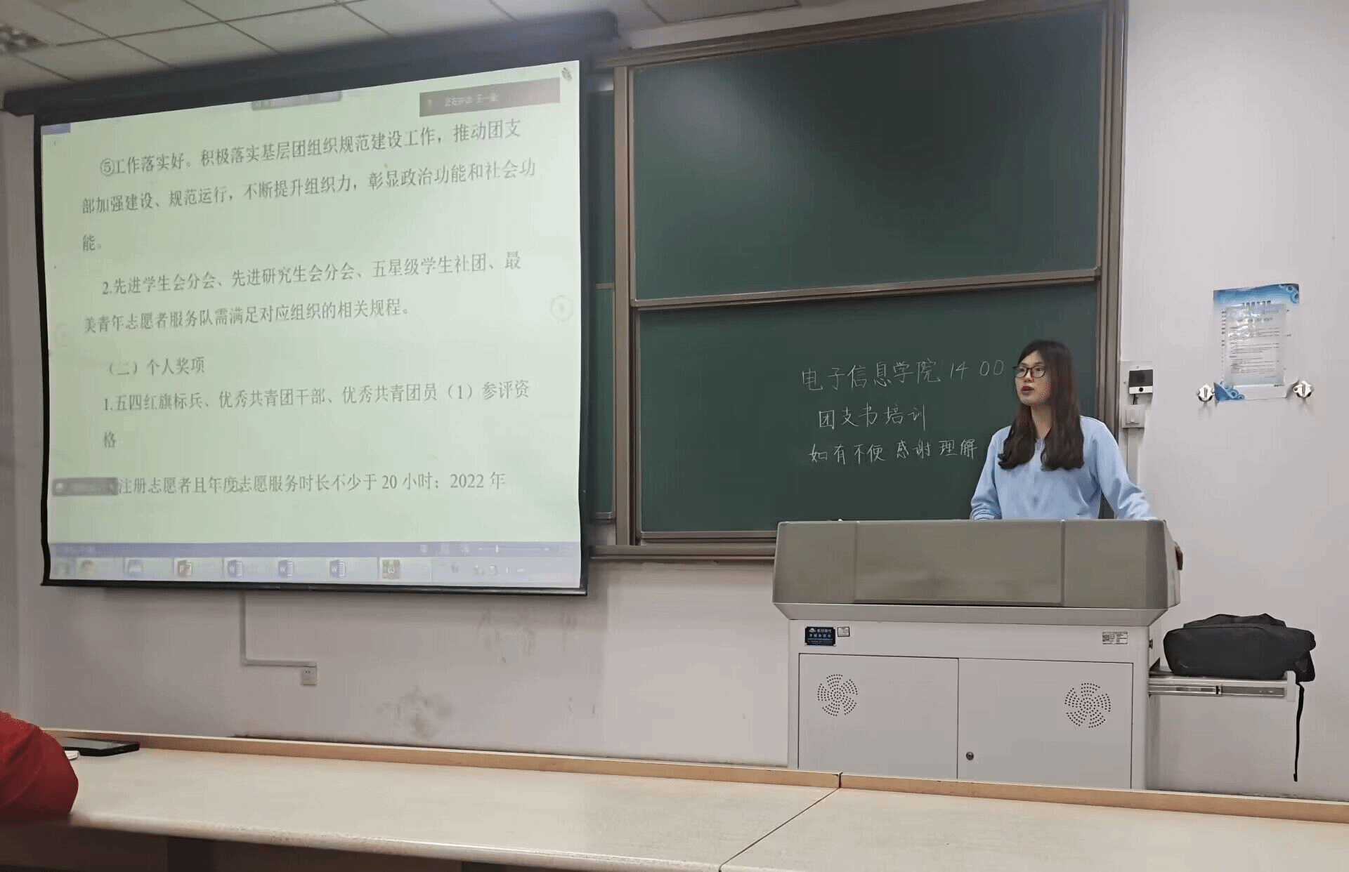 为做好新学期团务工作、顺利开展本年度“五四”表彰工作,3月11日下午,电子信息学院在教学楼西楼C205召开了新学期团干部大会并以“五四”表彰主题开展了本年度第一次团课。本次团课由学院团委书记王嘉悦、团委副书记王一涵主持,全体电子信息学院团支书参加。