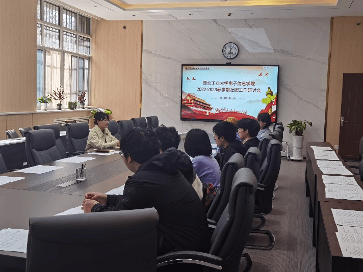 为进一步促进社团思想政治教育,完善落实社团管理规范,督促社团校园活动开展,3月14日下午13:00,电子信息学院于学院楼119召开2022-2023春学期第一次社团工作研讨会。院属社团西北工业大学学生配音协会、西北工业大学学生魔方协会、西北工业大学学生Highcold音乐爱好者协会、西北工业大学橄榄球协会和西北工业大学学生军星协会负责人参与会议。本次会议由电子信息学院团委书记王嘉悦主持。