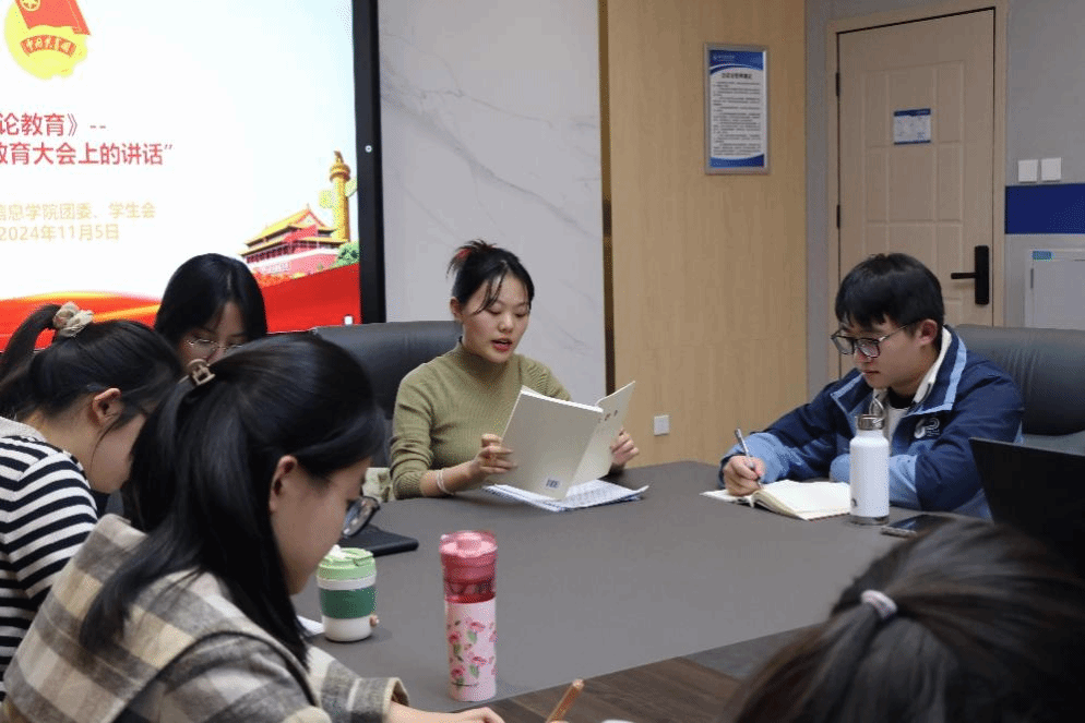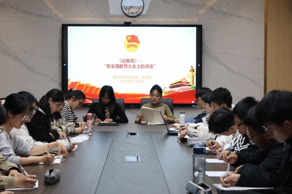 11月5日,电子信息学院团委、学生会于电子信息学院119会议室开展专题学习,此次会议学习了《论教育》——“在全国教育大会上的讲话”这一篇目,电子信息学院团委书记王嘉悦围绕主要内容和重点工作对其进行解读,各团学骨干结合岗位职责交流学习体会,部分志愿者参与学习。