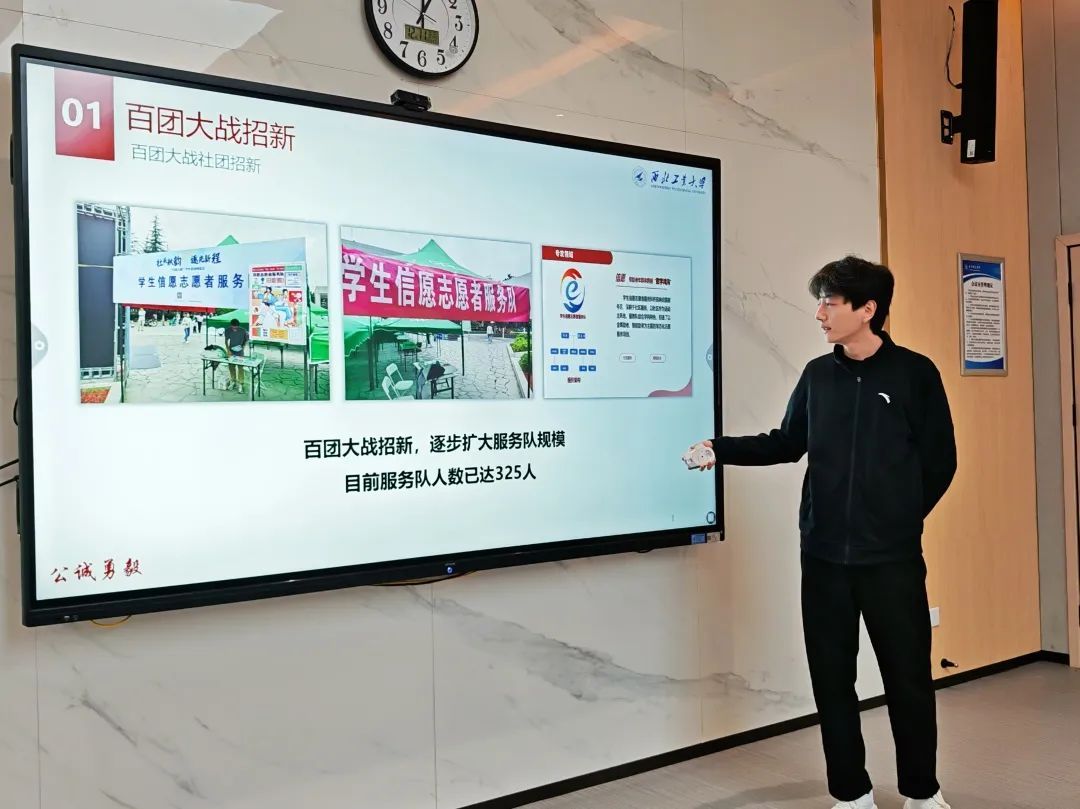 各社团负责人首先汇报了本学期社团开展的具体工作与成效,以及未来社团建设工作计划。学生信愿志愿者服务队以智能化助老项目作为社团特色活动,通过党团共建的形式拓宽活动覆盖面,探索有电子信息学院特色的智能助老道路。学生军星协会通过国防特色校园文化活动、军工单位社会实践等举措,引导学生培养爱国主义精神。学生橄榄球协会锐意进取,“橄”为人先,多次取得中国大学生橄榄球锦标赛冠军,通过国际国内比赛交流不断扩宽协会影响力。学生电子爱好者协会结合学院学科特色,吸引超500名学生参与社团日常活动,通过公开课等形式,提高社团成员专业技能水平。学生魔方协会以魔方为载体,庆祝中华人民共和国成立75周年,不断加强对外交流合作,推动社团专业化、创新化建设。