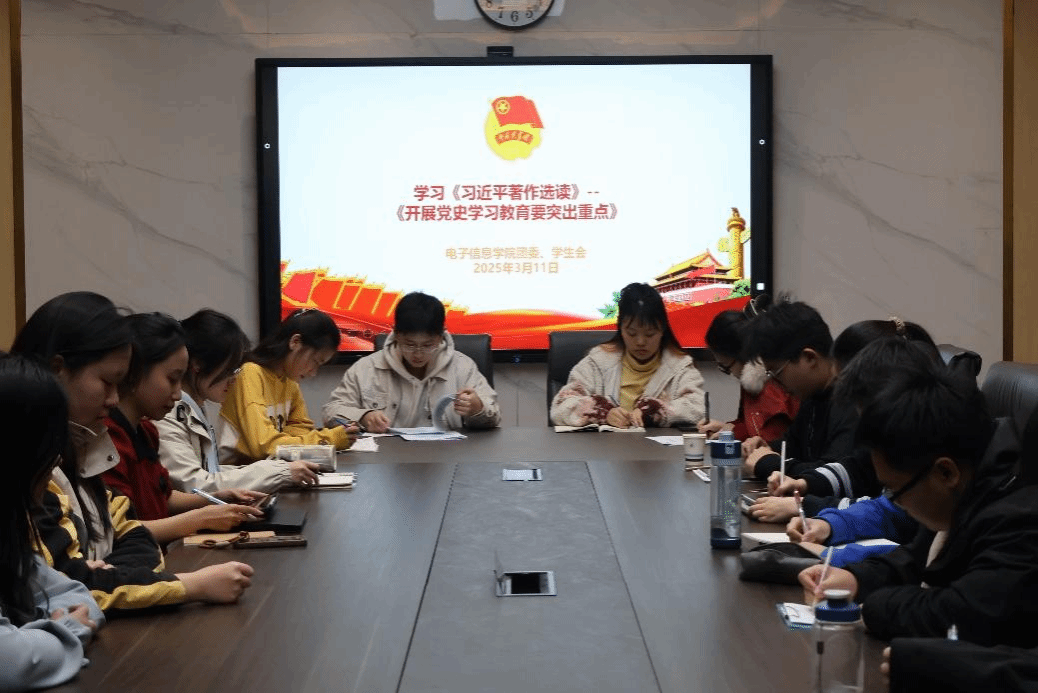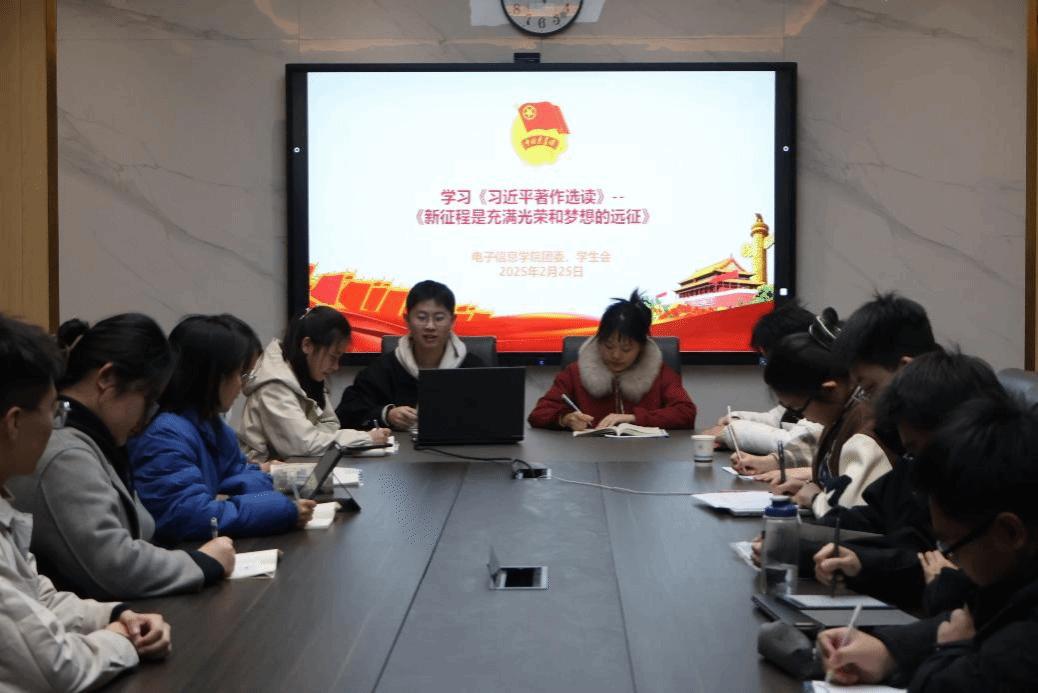 为深刻领会习近平新时代中国特色社会主义思想,明确发展方向,提升工作能力,电子信息学院团委、学生会开展3次《习近平著作选读》专题学习,会议由团委书记王嘉悦主持,团学骨干及部分志愿者参与学习。