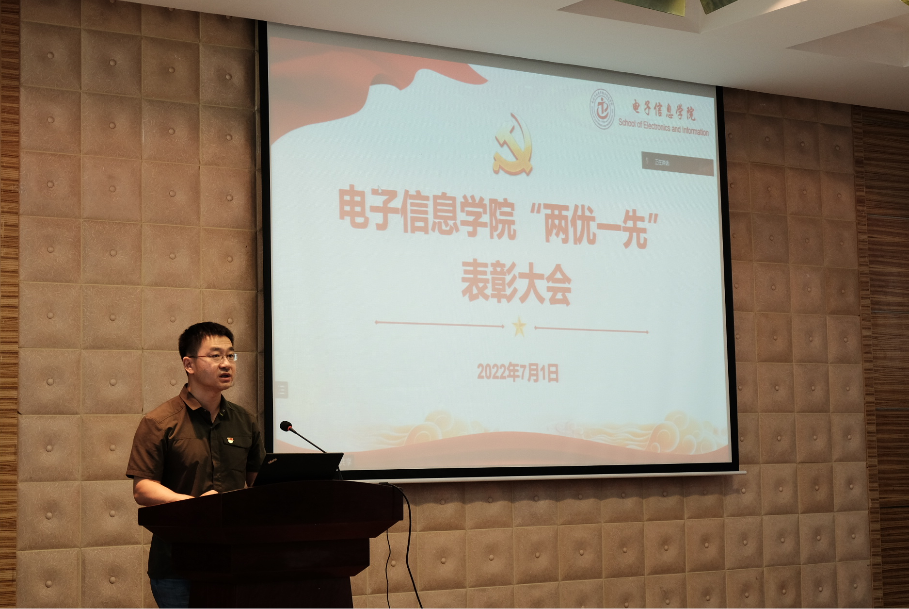 为庆祝中国共产党成立101周年,巩固深化党史学习教育成果,充分发挥电子信息学院基层党组织战斗堡垒和党员先锋模范作用,7月1午,电子信息学院八九院报告厅召开“两优一先”表彰大会。学院领导班子成员、党委委员、各党支部书记以及获奖先进个人代表参加会议学院党委副书记高敏主持会议