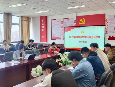 2024年3月21日,电子信息学院在432会议室召开新学期第一次学生党支部书记例会,学院党委副书记高敏以及全体学生党支部书记参加会议。会议由党务秘书王心怡主持。