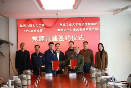 12月11日上午,调研团在北京微电子技术研究所进行调研,参观了成果展览室。航天九院副院长陈雷,北京微电子技术研究所所长王勇、副所长周亮、张彦龙以及相关部门的主要负责人、技术骨干成员和部分校友参加座谈交流。青年教师杜永乾、王佳和陈楠分别作了科研创新成果交流汇报。学院微纳电子与集成电路系党支部与北京微电子技术研究所FPGA党支部签署共建协议,并举行了西北工业大学“大思政课”实践教学基地的授牌仪式。在完成签约及授牌仪式后,双方围绕科研规划论证、平台建设、校企协同育人以及学生就业等议题进行了深入的探讨交流。陈雷对航天九院与学院在人才培养、科研合作方面的美好愿景表达了殷切的期望,表示双方要加强互动,将产学研合作走深走实。王勇热情欢迎调研团的到访,表示通过党建引领合作交流的方式,能够为双方搭建更为紧密的合作平台,共同为航天电子信息发展贡献力量。