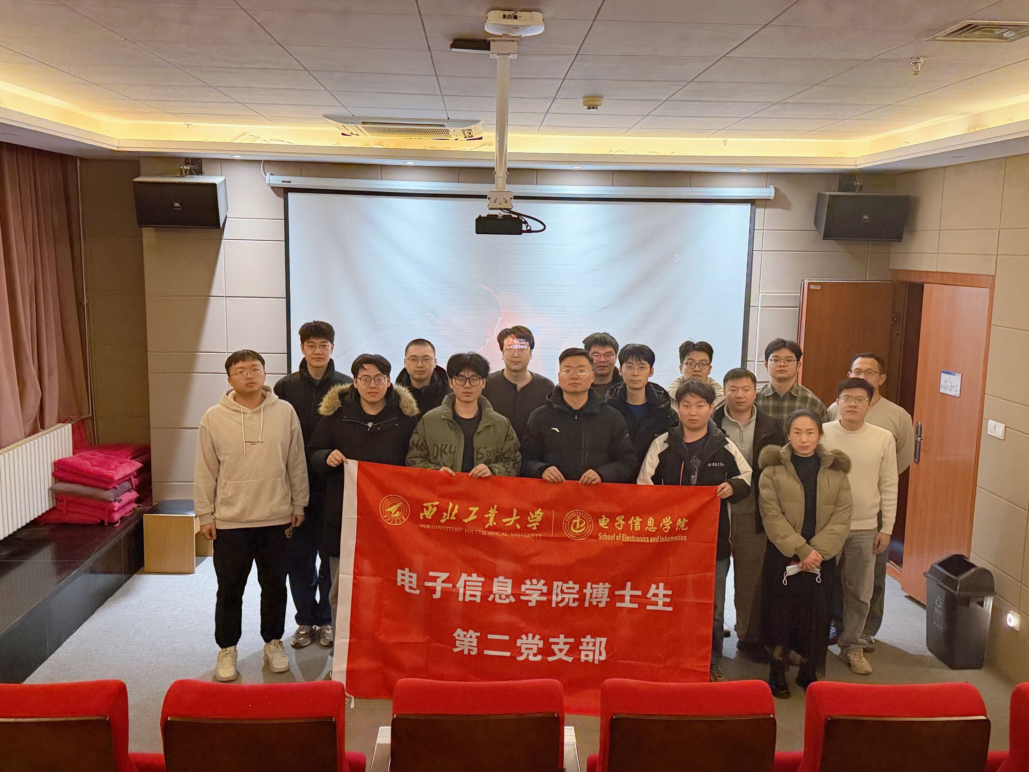为深入推进“研创先锋 青锋向党”支部品牌建设,激励博士生党员厚植家国情怀、勇担科研使命,2026年1月13日,电子信息学院博士生第二党支部在长安校区图书馆影视厅组织开展《我和我的祖国》集中观影主题党日活动。支部党员与入党积极分子共同参与,在光影叙事中感悟科研精神,汲取奋进力量。