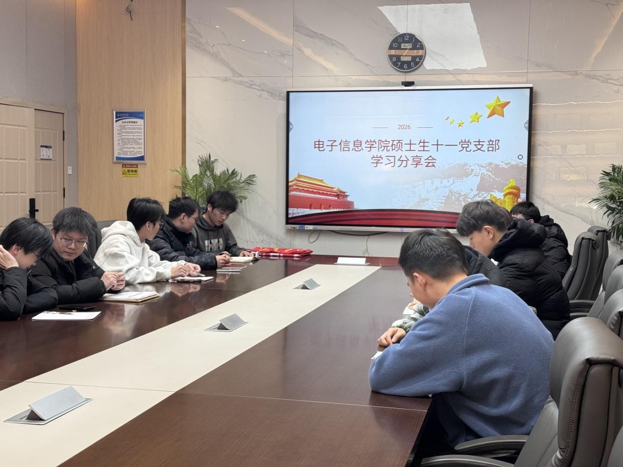 为深入学习贯彻党的二十届四中全会精神,进一步强化研究生党员思想引领,1月11日,电子信息学院硕士生第十一党支部组织开展了以“学深悟透强信念、以学促行担使命”为主题的学习分享会。活动由支部书记陈哲文主持。