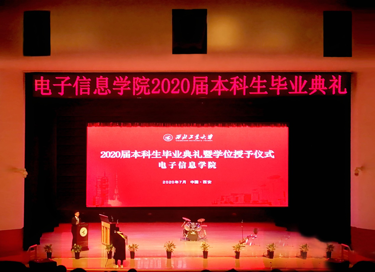 微电子学院院长、原电子信息学院院长周德云老师,电子信息学院党委书记李春林老师、副院长(主持工作)王伶老师、副院长周巍老师、副院长冯晓毅老师、党委副书记彭亮老师、李建瀛老师、辅导员和班主任老师出席典礼,与毕业生们共同分享收获的喜悦,祝贺他们圆满完成学业,昂首阔步迈向崭新的人生征程。典礼由我院本届优秀毕业生卢艺航同学主持。