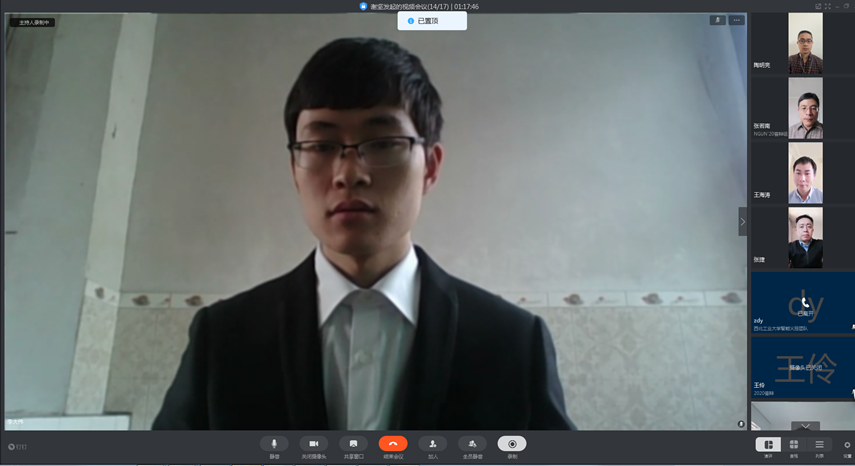 为了做好毕业答辩工作,把好研究生培养质量的最后一关,学院对毕业答辩工作实施方案进行逐项审核修订,成立了由院领导、学位分会委员、研究生督导、系主任组成的答辩督导小组,根据学科情况分配督导任务,对学院所有答辩实行百分之百覆盖,同时强化加强答辩秘书培训、强化视频答辩准备工作实施和强化答辩过程规范化。各答辩小组积极配合,认真开展线上答辩准备工作。2月16日至2月18日,学院所有答辩小组完成了视频答辩预演,2月19日,学院分7个督导小组对28个答辩小组的准备情况逐一进行了检查,学院书记、院长和三位副院长全部参加了检查工作,在此基础上,学院不断向答辩小组反馈学院内外的各种关于线上答辩的督导意见及经验总结,不断加强对线上答辩流程的准确、熟练掌握。2月26日, 学院举行了首批视频答辩,研究生院王鹏副院长、学院院长周德云教授、学校督查组督导袁朝辉教授以及答辩委员会专家和学生等共18人参加了本次线上答辩。本次答辩采用了钉钉软件,7位硕士生通过屏幕共享来远程实时地向专家和旁听师生汇报了自己的研究内容与成果,并在线互动交流,回答问题,整个答辩及问答互动过程交流顺畅,效果很好。本次答辩严格执行了西北工业大学硕士研究生毕业正式答辩标准,整体效果无异于现场答辩。最后,经答辩委员会无记名投票,全票通过7位同学的毕业论文答辩,并建议授予7位同学工学(程)硕士学位。作为学院首个公开视频答辩,本次答辩的顺利进行得益于教师、同学、校院两级督导、校院系领导、志愿者、教辅人员等的通力协作,也为学院后续的答辩工作提供了重要的参考和借鉴。截止3月2日,学院已有5个答辩小组、36名硕士生顺利完成线上答辩,各答辩小组的成功经验和应注意的问题也及时在答辩小组间进行分享,为后续视频答辩提供了极有价值的参考。