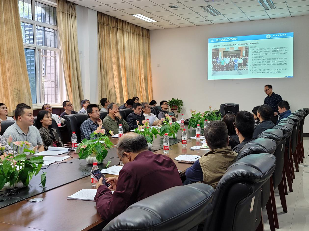 9月25日,电子信息学院召开2020年秋季学期工作会议。学院党委书记李春林主持会议并讲话,王伶副院长(主持工作)对暑期重点工作进行总结并对新学期重点工作进行部署。全院教职工按系别分三组依次参加会议并展开研讨。