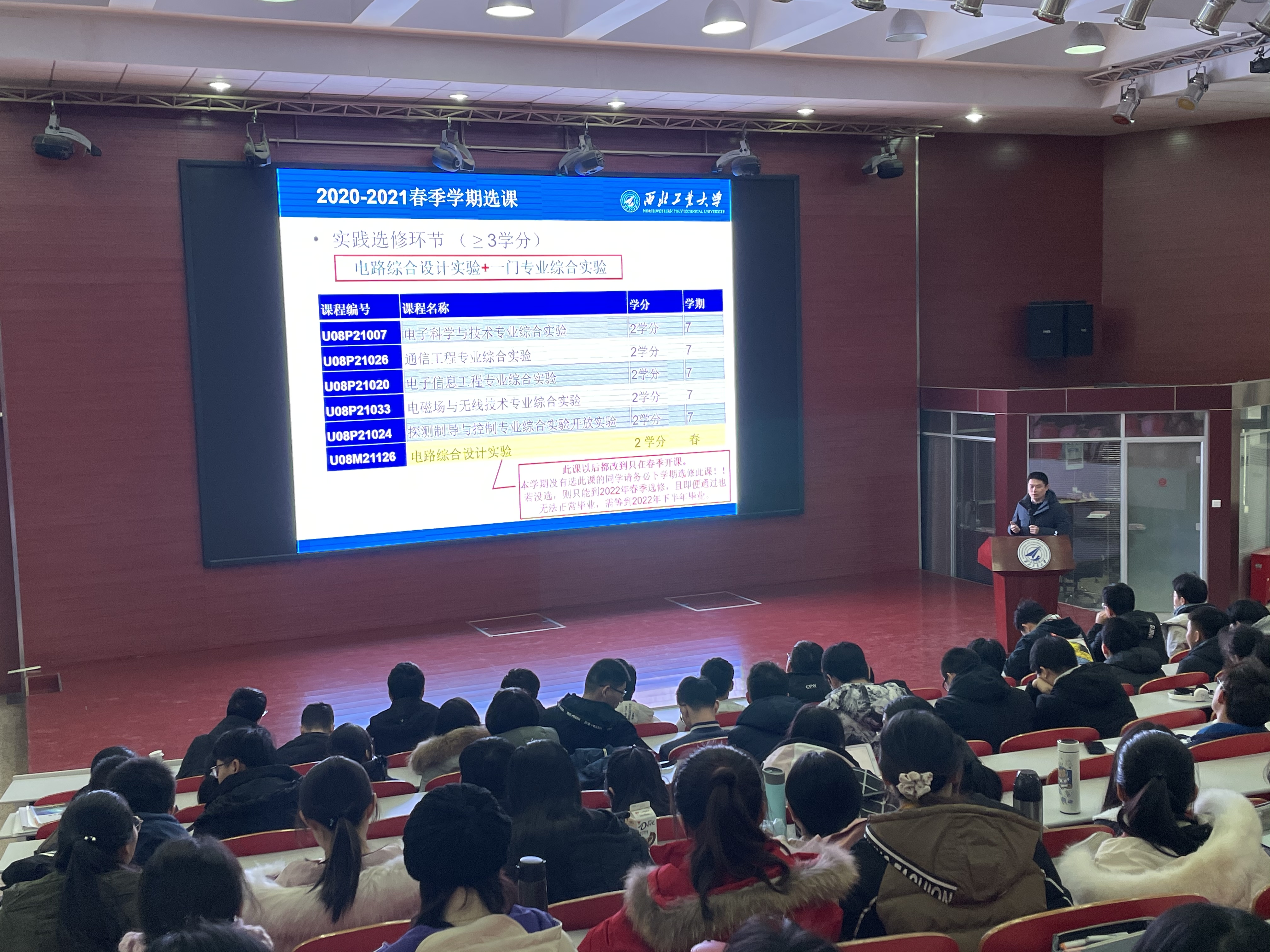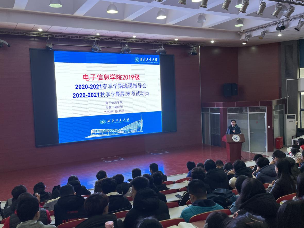 为保障人才培养体系中完全学分制的稳步实施,贯彻以学生为根的办学理念,更好地指导本科生进行下学期的选课工作和本学期期末考试的准备工作,12月13日,电子信息学院在长安校区针对2018级、2019级和2020级本科生分别召开了三场2020-2021春季学期选课指导宣讲会和和期末考试动员会。会议由周巍副院长主讲。