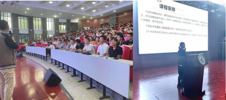 会议开始,校教务处仇梦一老师从为什么选课、选什么课、怎么选课三个方面为2021级同学生动地讲解了选课流程、选课技巧以及合理安排课程,提醒同学们提前做好课程规划,又重点介绍了往年学生选课过程中出现的问题,并对2021级新版培养方案中数学类和语言类课程的修读进行了解说。