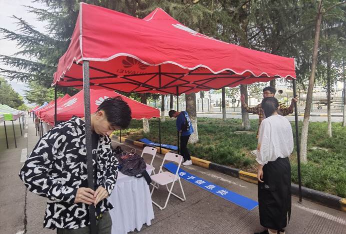 27-28日,团委、学生会的30多位学生干事在学院统一指导下,提前布置场地、搬运内外场物资、调整好设备、提前熟悉报到流程等。志愿者们分工明确、工作积极,力求让每一位新生感受到来自电子信息学院的温暖。