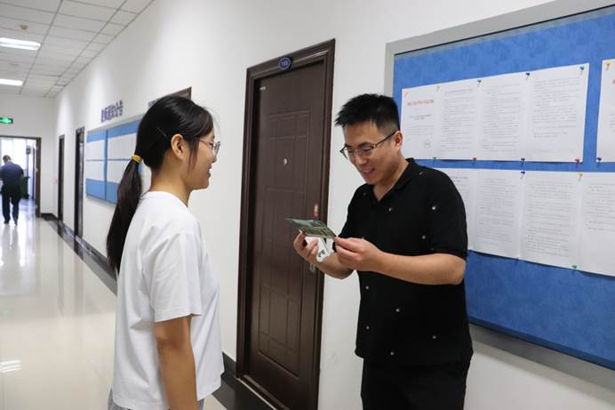 2021年9月10日上午11时许,电子信息学院楼内部充满祝福的氛围,由电子信息学院团委、学生会组织的教师节送贺卡活动悄然展开。学生会主席团成员以及各部门负责人,在不打扰正常工作秩序的前提下,穿梭于老师的办公室间,向每一位默默耕耘的老师送去了节日的祝福。通过手写祝福语,道一声“老师节日快乐”的方式,表达了作为学生对老师的无限敬意。老师们在收到节日的祝福后,既惊喜又意外,纷纷对团委、学生会同学的用心表示感谢。