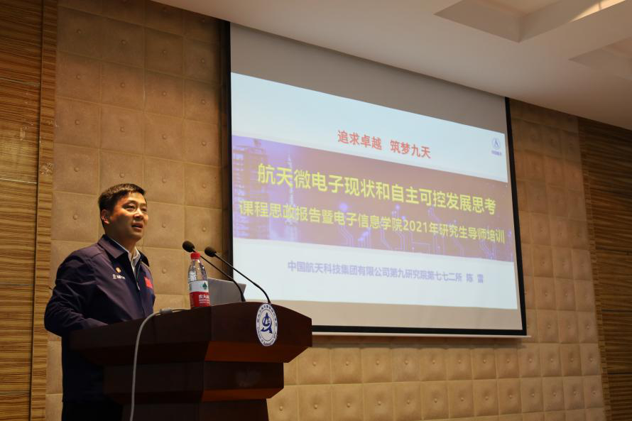 座谈会后,陈雷所长为电子信息学院学生讲授题为《航天微电子现状和自主可控发展思考》的课程思政报告,《模拟集成电路分析与设计》《模拟电子技术基础》两门课程一百多名本科生参加。陈雷在报告中讲述了集成电路发展历史、芯片的制作流程和当今技术难题,系统介绍了航天微电子产业发展现状,结合各国发展形势,对我国微电子技术全流程自主可控的发展前景进行了全面展望。最后,他鼓励我院学生努力学好电子信息基础知识,积极投身我国微电子事业,胸怀祖国、敢为人先,积极探寻自己的职业理想,树立超越前人的远大志向,并为之锲而不舍地努力。