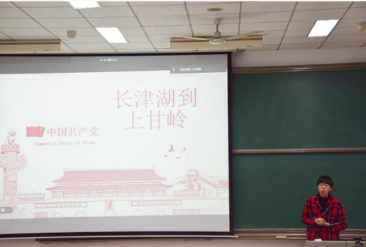 汤志豪作为电子信息学院“人人讲党史”活动一等奖获得者,受邀参与本次党课活动。他从曾祖父参加抗美援朝的亲身经历出发,从长津湖讲到上甘岭,号召大家永远铭记和学习志愿军敢打必胜、英勇顽强的牺牲奉献精神。