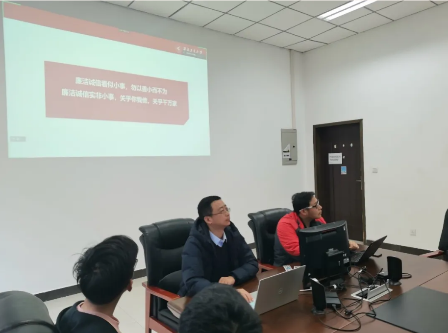 12月1日中午,电子信息学院党委副书记彭亮在学院楼119会议室以“线上+线下”的方式讲授题为“廉洁诚信——努力成为德才兼备的栋梁之材”主题党课。党支部全体支委和发展对象共200余人参与本次党课活动。本次活动由辅导员粟嘉主持。