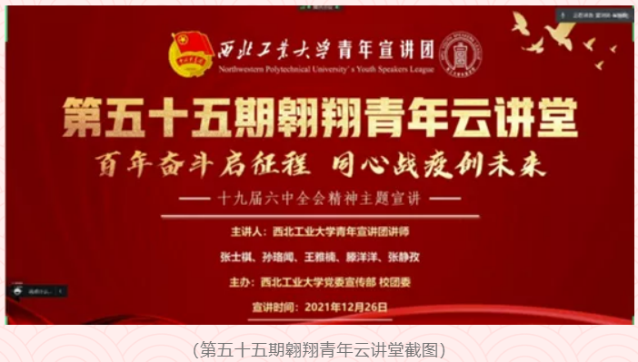2021年12月26日,我院团委组织全院团学青年线上参加第五十五期翱翔青年云讲堂,聆听青年宣讲团十九届六中全会主题宣讲。通过此次宣讲,同学们对十九届六中全会精神有了更加细致全面的了解。