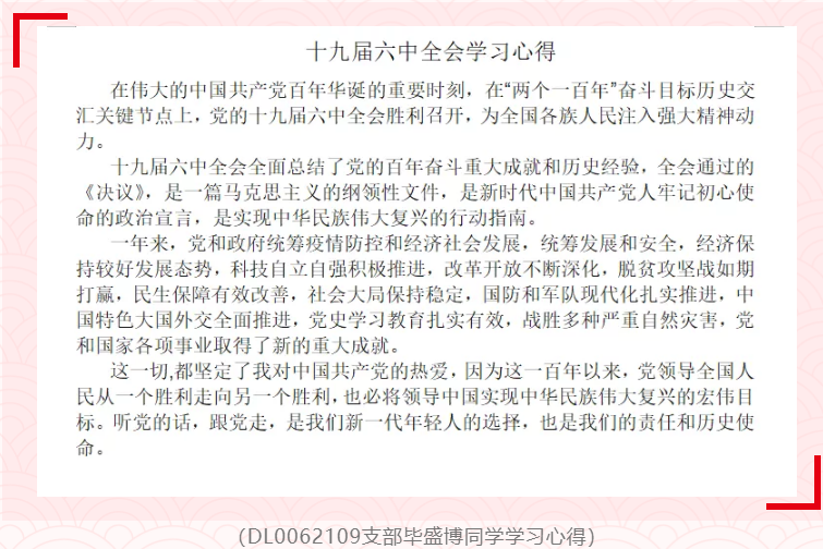 心中有信仰,脚下就有力量。作为当代大学生,在实现自我的远大梦想的同时,团学青年们更应当坚持深入贯彻并践行党的十九届六中全会精神。