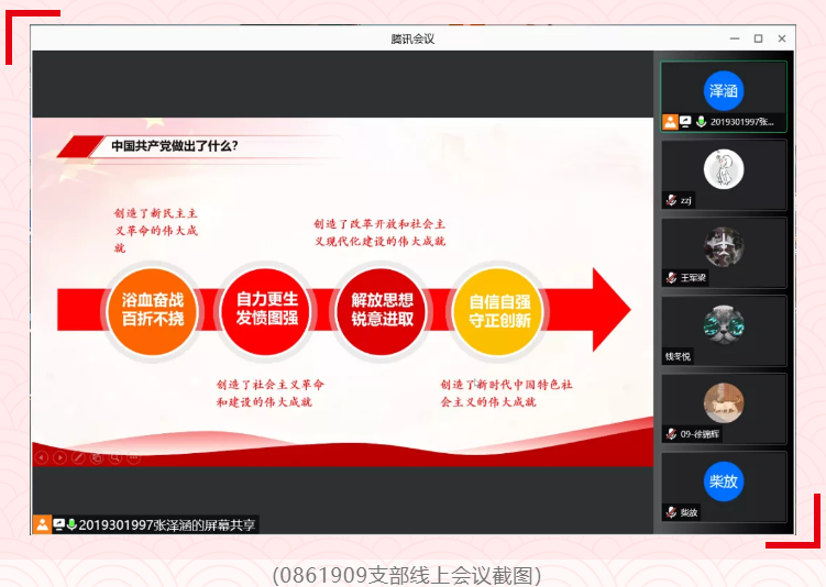 电子信息学院团委紧跟时政热点,及时将学习党的十九届六中全会精神作为11月“学习新思想,争做新青年”主题团日活动重点内容,使广大电信学子第一时间对全会精神有了初步的认识。