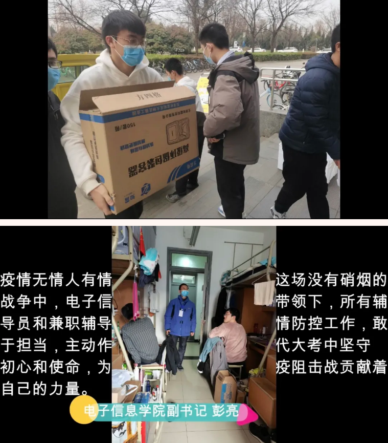疫情可以阻隔人与人的距离,却阻隔不了心与心的距离。志愿者汇报视频中,电子信息学院的志愿者们温暖他人、照亮自我,以无限诚挚的担当,责任与热情,谱写一曲不朽的青春之歌。在他们身上,我们看到了中国青年一代的奉献、无私、负重前行,我们看到了岂曰无衣,与子同袍的英雄志气。