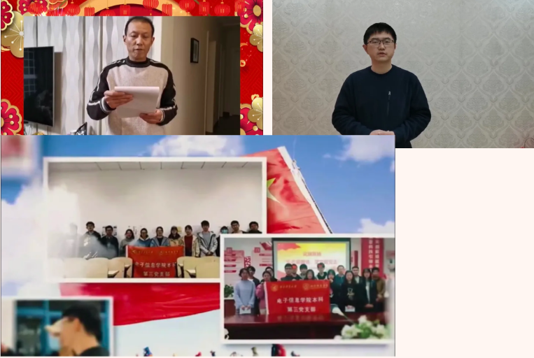 线上晚会伊始,电子信息学院的领导、老师、学生家长及中电十所领导为同学们送上了自己的新年祝福。大家回顾过去一年的工作,展望未来一年的发展,塑就本年学院各项事业的点滴成长,书写电子信息学院新的华章。